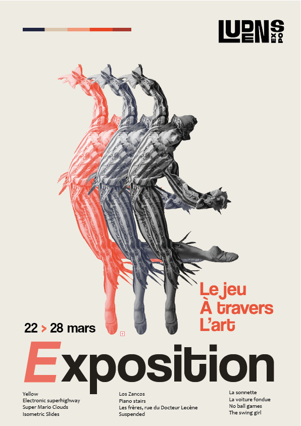 Dans le cadre d’un projet universitaire, nous avons conçu « Ludens Expo« . Il s’agit d’une exposition culturelle destinée aux 18-25 ans. Le thème central est « Le jeu à travers l’art : critiques et représentations de la société ». Ainsi, l’objectif était de démontrer comment le jeu dépasse la simple fonction de loisir. En effet, cette pratique universelle devient ici un véritable outil artistique, social et politique.